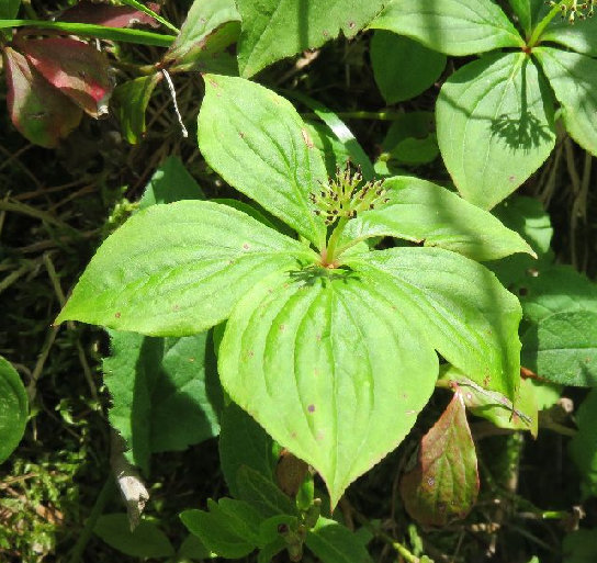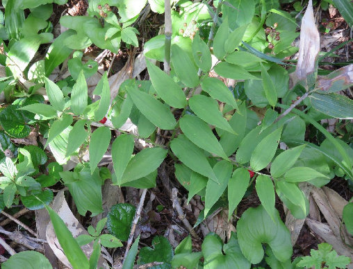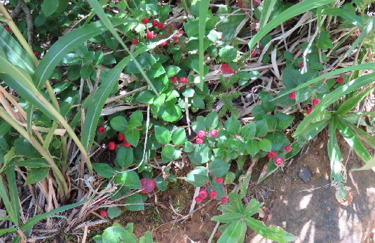 15、ゴゼンタチバナの実、花が散った直後なので、まだ実は小さい。 仙女平分岐の上。 |
