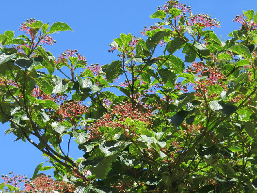 05、クマノミズキも実を付けていた。赤く見えるのは今年の枝、 秋がもう少し深まると、花が咲いたようにも見える。 |